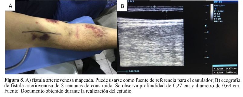 La ecografía podría desempeñar varios papeles, incluido el uso más temprano de la FAV gracias a una menor frecuencia de complicaciones asociadas a la punción, el uso exitoso de la FAV difícil de canular y el entrenamiento para la autocanalización en caso de hemodiálisis en casa como sucede en países de Norteamérica y en Europa. La primera canulación del acceso vascular también es un factor determinante del uso exitoso y continuo de la fístula16.