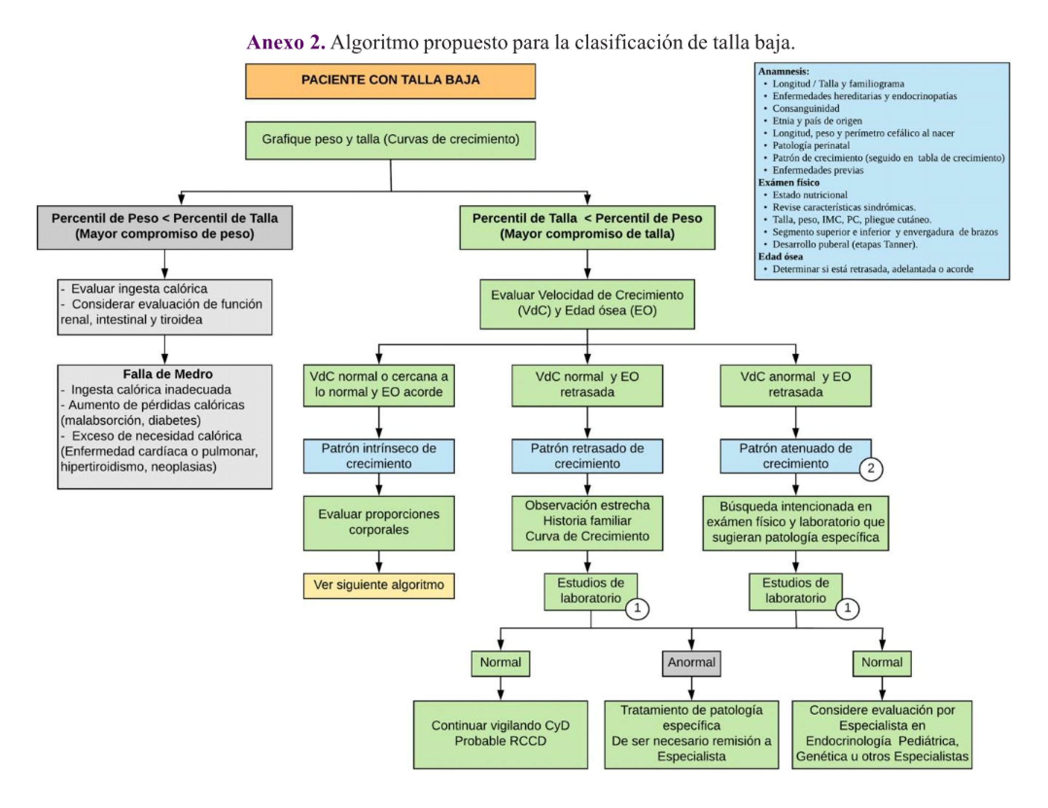 Los niños PEG que no tengan una recuperación del crecimiento o reatrapaje de talla a los 2 años de edad requieren nueva evaluación clínica para determinar la causa. En caso de no encontrarse o de sospechar una alteración hormonal, se recomienda valoración por endocrinología pediátrica para diagnóstico y/o tratamiento44,82.
