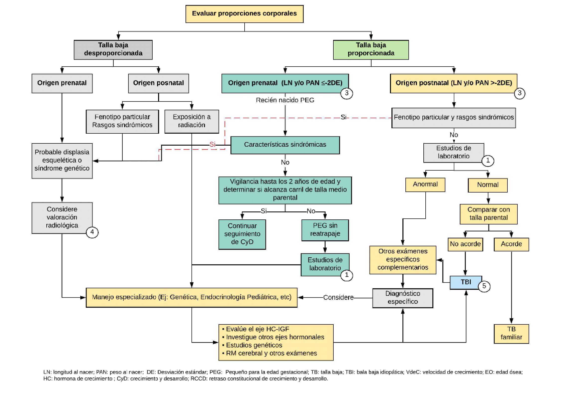 La mayoría de casos de niños con TB corresponden a variantes de la normalidad, estimando que solo cerca del 20% de los casos corresponde a niños con TB patológica7-9. Por tanto, el reto es identificar este último grupo de pacientes para facilitar las decisiones sobre la necesidad de pruebas diagnósticas específicas e indicaciones de tratamiento con hormona de crecimiento recombinante humana (somatropina).